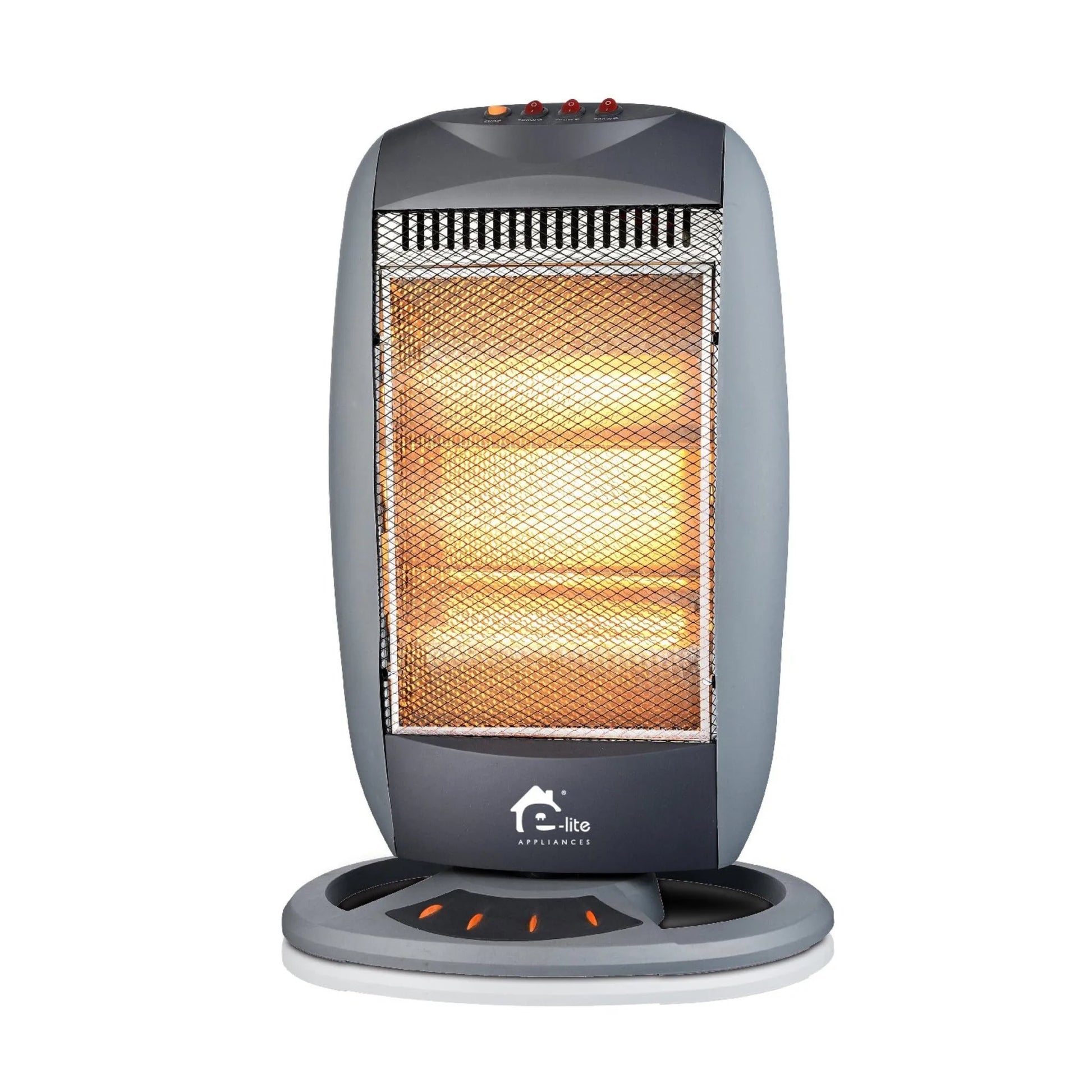 The E-Lite EHH-12 Halogen Heater transforms any room into a cozy retreat with just the flick of a switch. Designed for instant warmth, this state-of-the-art heater features advanced heating tubes encased in a composite molded, cool-touch casing. Its clever oscillating safety base ensures even heat distribution within seconds. With three heat settings (400W, 800W, and 1200W), it offers flexibility to meet your heating needs. Additional safety features include a safety tip-over switch, grill security, anti-fall protection, and overheat protection, making it a reliable choice for any space. Enjoy energy-efficient warmth and comfort with the E-Lite EHH-12 Halogen Heater.